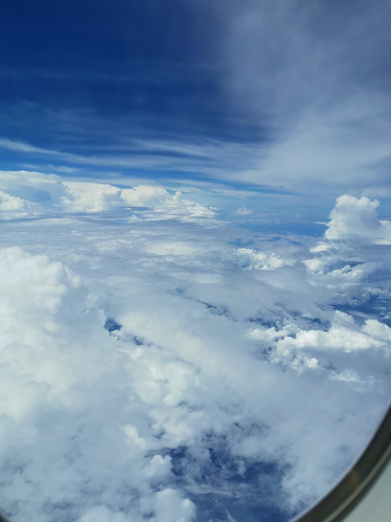 Whenever we flew previously, John always had the window seat. He loved to see the clouds, plus it allowed him to rest against the side of the cabin during the flight. Often sleeping with Bear cuddled up to him. Now it was me and Fin, so I was looking at the clouds for John.