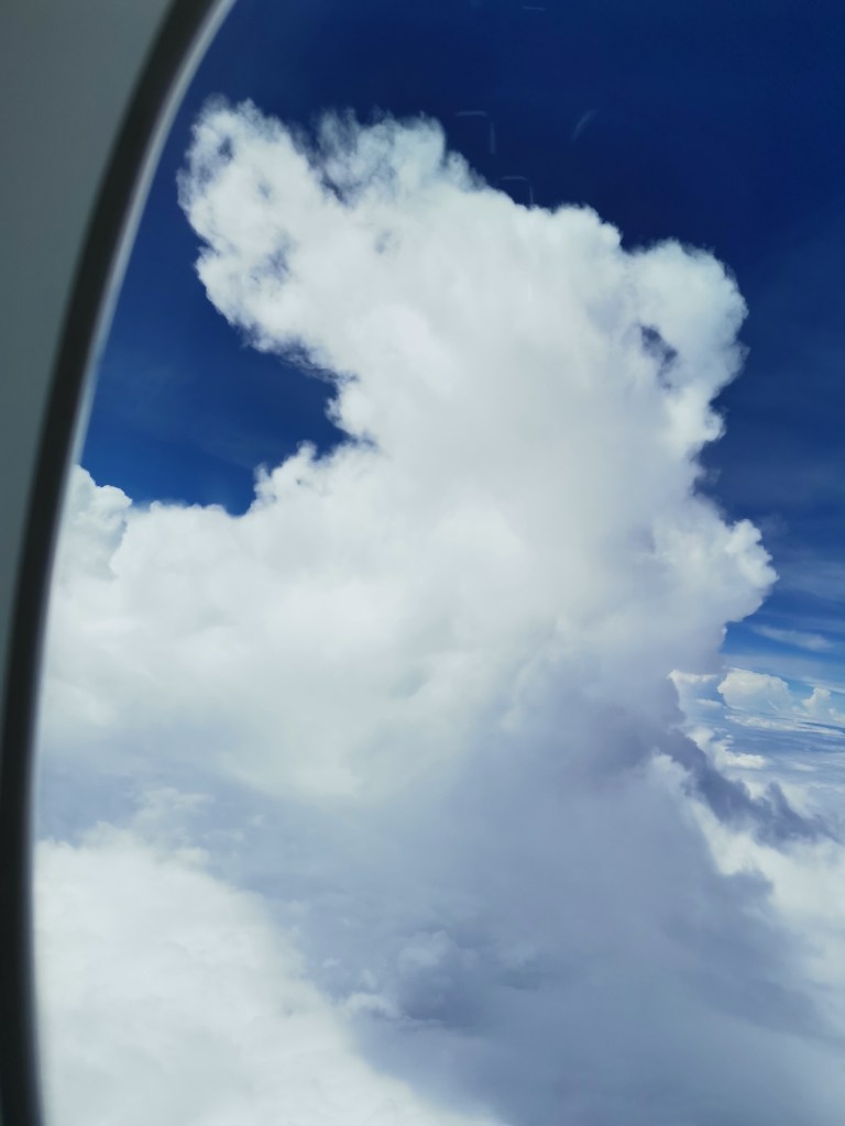 I don’t know if you believe in signs from the other side, I do. When I opened the window blind at one stage, thinking about the clouds I was going to see that I knew John would enjoy, the cloud formation was a bear. Not a teddy, but an animal bear. I think that was my Chief Grey Bear, letting me know I hadn’t left him in Australia, he was travelling with me. You might remember me mentioning that John’s nickname was Chief Grey Bear. It is clear to me the snout, ears and neck of the bear and it looks like it is smiling. It made me smile too. Just as quickly as it was there, it was gone. But I have the photo to prove I wasn’t imagining it.