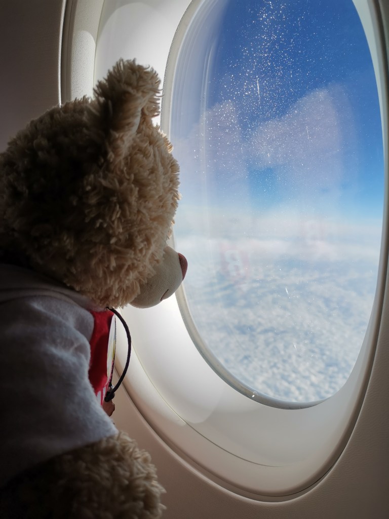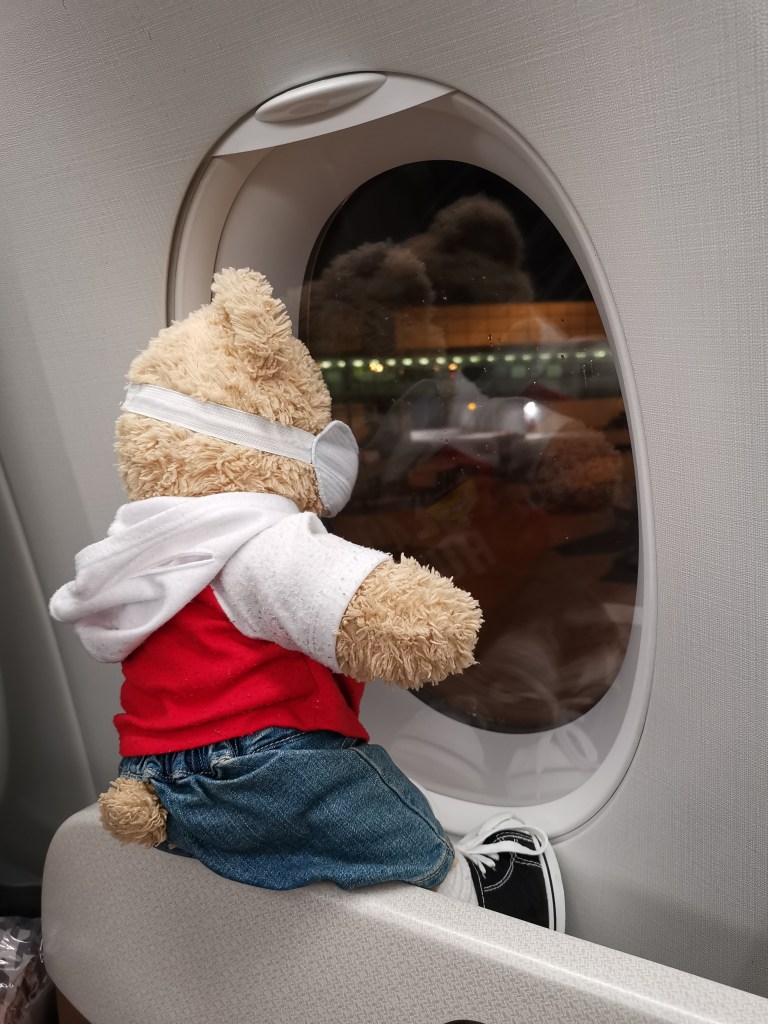 Again the cabin crew were amazing and they fell in love with Fin straight away.  It is lovely that stuffed toys are so universal.  One of the hostesses said she has a Build-a-Bear Monkey that she loves. They were very keen to take our photo, which was fine by Fin and me.