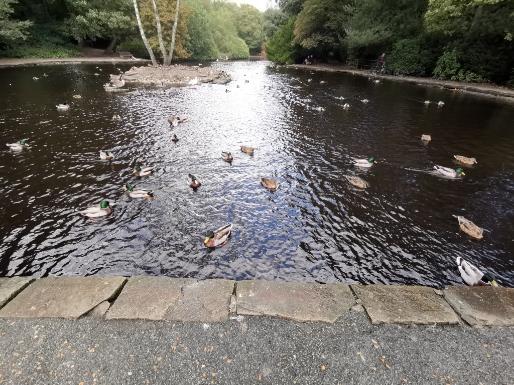The sound of running water welcomed us into the park, with a fast flowing stream passing through it and a lake with very hungry ducks on it. As we walked towards the lake, we had a following of ducks who were hoping we had brought food with us. Sorry ducks, not this time, but if we come again, we will bring our bread scraps for you.