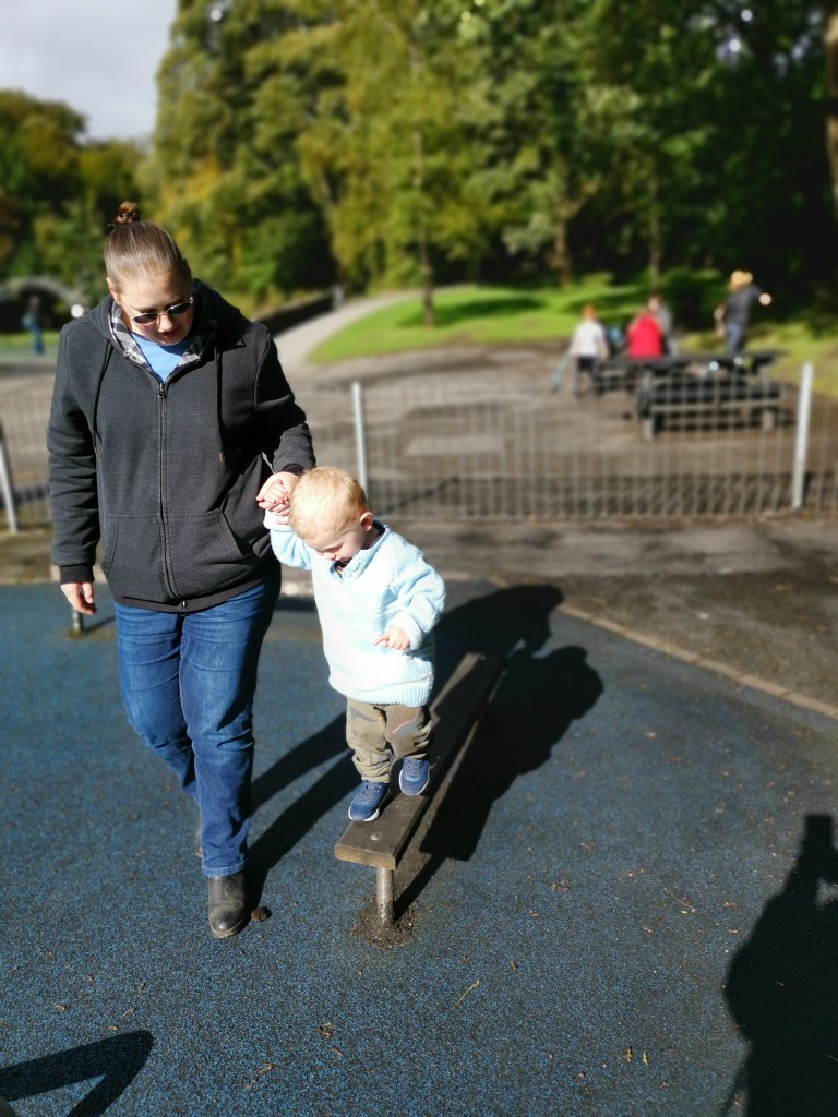 Glossop is a town on the edge of the Peak District, a beautiful area of countryside about 40 minutes from where we live. There is a park, which includes a playground, called Manor Park which had a recommendation from another Nanna I met. That sounded like a nice place to check out. Nat and Mark where ok with that as somewhere to go for the afternoon.