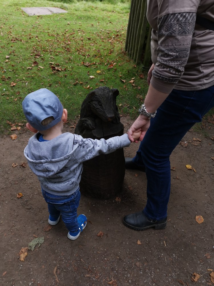 Alex liked that there were several animals carved out of tree stumps that were all about his height.