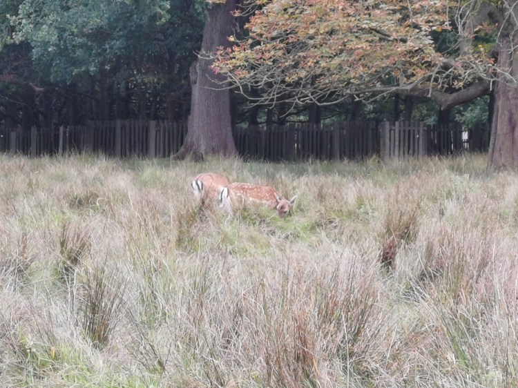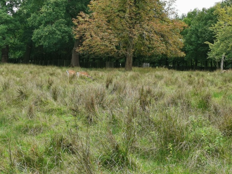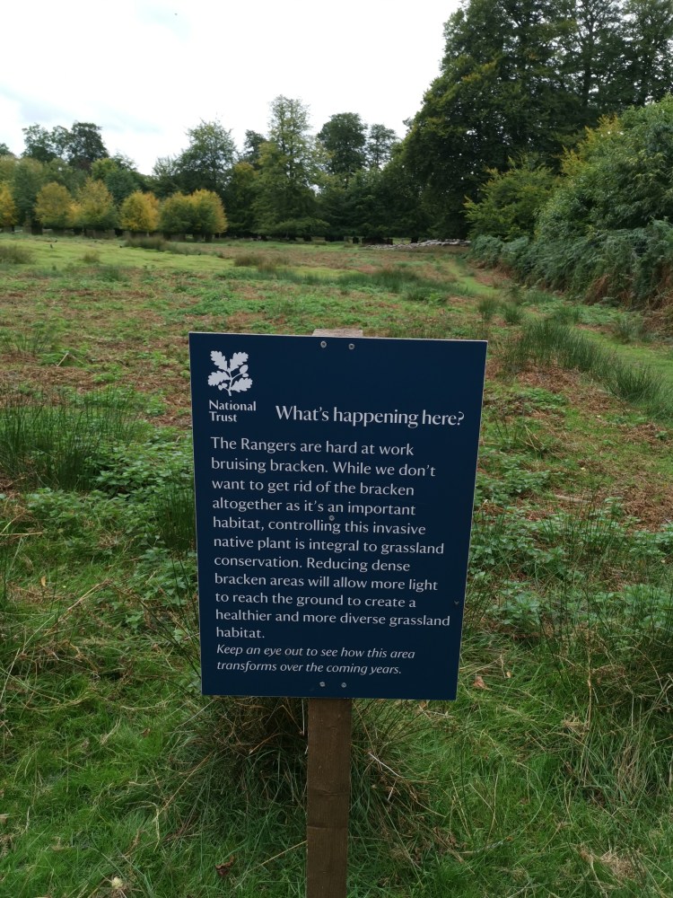 As we walked around the meadows we saw more of the deer and also where the effort to control the bracken was being undertaken by bruising it, allowing other plants to grow. I didn’t know what that meant, but it appears it is a process that is done regularly to damage the stalks of the bracken, making them weaker and also weakening the system of roots and rhizomes underground. They even have small machines that can be pulled by a tractor that will apply the pressure needed. Bracken is very hard to control, because the strength of the plant is underground, so just chopping off the leaves won’t stop it. It looks like they are doing a pretty good job here in the deer park.