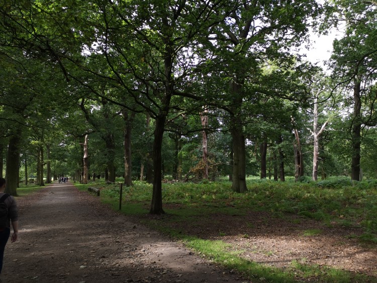 It was pretty walking around the perimeter of the park. We passed a lot of other families out for the afternoon. Lots of people with their dogs, on leads, which was a requirement to protect the deer.